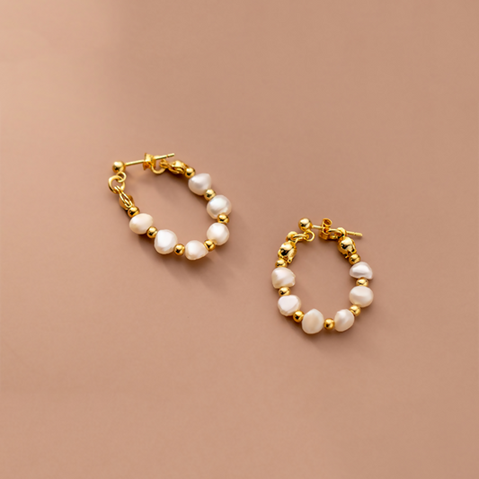 ANYCO Fashion Earrings Gold 925 Sterling Silver Bohemian Freshwater Baroque Pearl Circle Huggies for Women 18k Jewelry