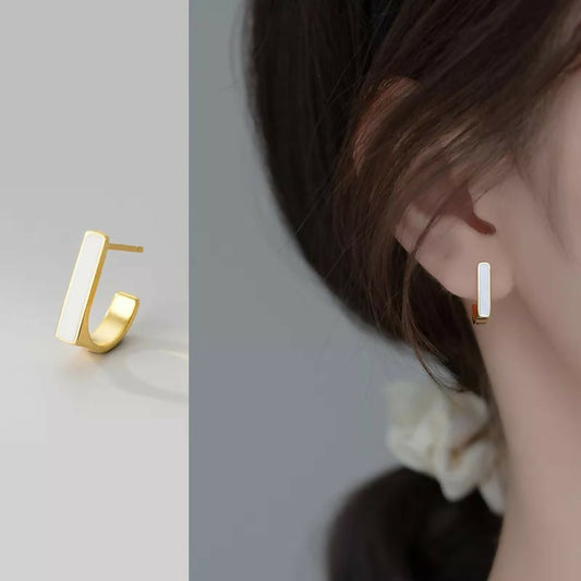 ANYCO Fashion Earrings Gold 925 Sterling Silver Geometric Square White Enamel Elegant Stud for Women Jewelry