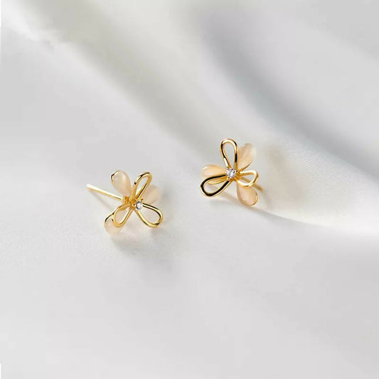 ANYCO Fashion Earrings Gold 925 Sterling Silver Cute Romantic Clover Synthetic Opal Stud for Women Jewelry Gift