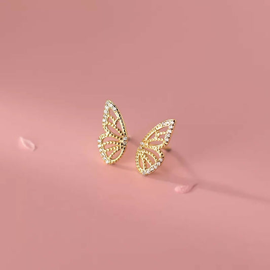ANYCO Fashion Earrings Gold 925 Sterling Romantic Butterfly Small Stud for Women Charm Jewelry Girl Gift