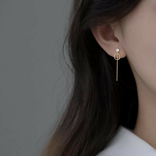 ANYCO Fashion Earrings Gold 925 Sterling Silver Personality Unique Tassel Pendant Zircon Stud for Women Chic Trendy Party Jewelry Gift