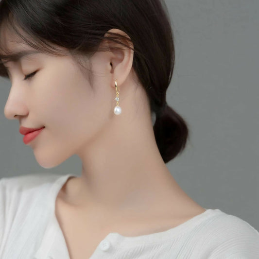 ANYCO Fashion Earrings Gold 925 Sterling Silver Elegant Natural Baroque Pearl Pendant Women Charming Jewelry