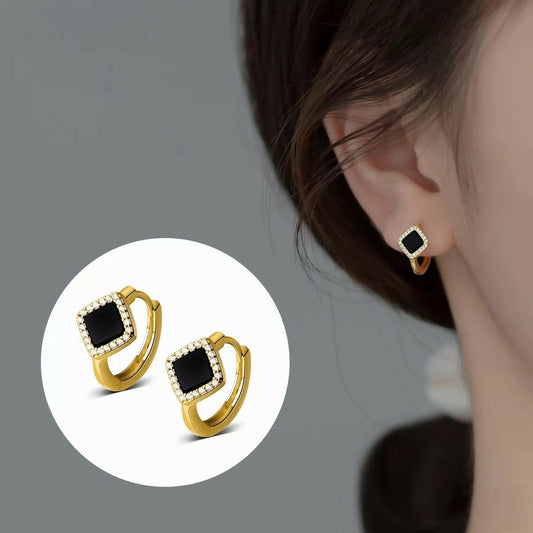 ANYCO Fashion Earrings Gold 925 Sterling Silver Black Luxury Zircon Simple Square Small Stud for Women Jewelry