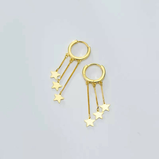 ANYCO Fashion Earrings Gold 925 Sterling Silver Romantic Tassel Star Huggies Drop Jewelry Gift for Women