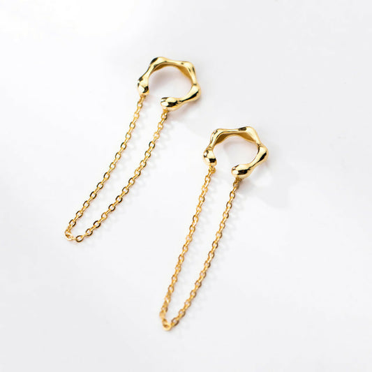 ANYCO Fashion Earrings Gold 925 Sterling Silver Punk Cuban Link Chain Bamboo Tassel Ear Cuffs Simple Bohemian Ear Clip Jewelry
