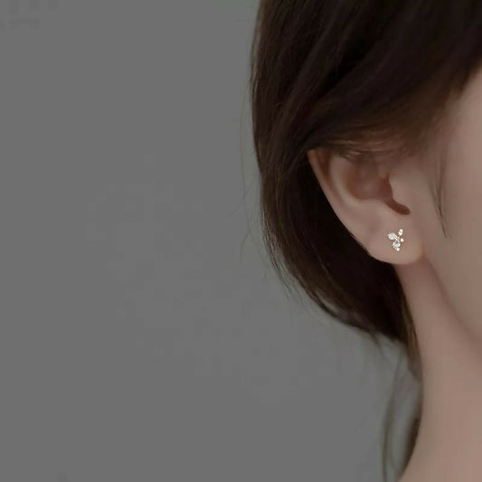ANYCO Fashion Earrings Gold 925 Sterling Silver Simple Sweet Clover Shiny Zircon Small Stud Teen Chic Ear Bone Piercing Women Jewelry