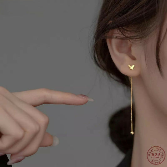 ANYCO Fashion Earrings Gold 925 Sterling Silver Sweet Romantic Butterfly Tassel Ear Line Drop for Women Jewelry Gift