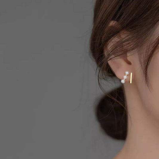 ANYCO Fashion Earrings Gold 925 Sterling Silver Simple Geometric Line Synthetic Pearl Small Stud for Women Piercing Jewelry