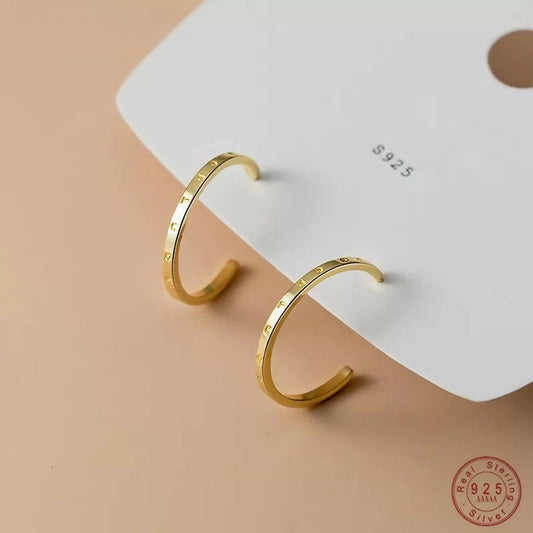 ANYCO Fashion Earrings Gold 925 Sterling Silver Simple Huggies Circle Initials Stud for Women Jewelry