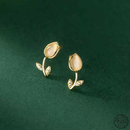 ANYCO Fashion Earrings Gold 925 Sterling Silver Romantic Statement Tulip Stud for Women Flower Jewelry