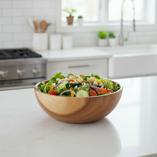 Anygleam Natural Wood Acacia Salad Bowl Kitchen Tableware
