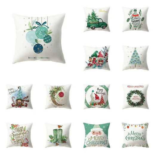 Anyhouz Pillowcase White Season Greetings Print Christmas Cotton Polyester Cushion Cover
