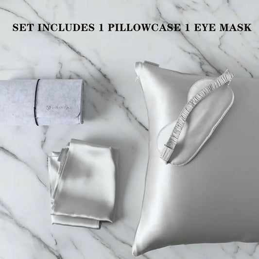 Anyhouz Pillowcase Light Gray Set with Eye Mask Mulberry Silk