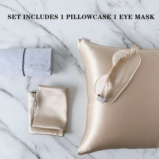 Anyhouz Pillowcase Gold Set with Eye Mask Mulberry Silk