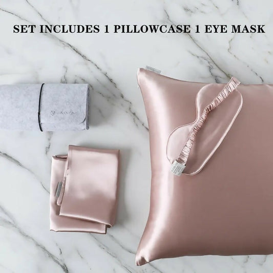 Anyhouz Pillowcase Pink Set with Eye Mask Mulberry Silk