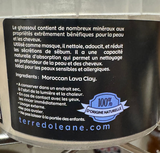 Terre d’Oleane Moroccan Ghassoul Lava Clay Powder 250gVendor:ZaytunamartRegular price $9.99 CADRegular priceUnit price / per-