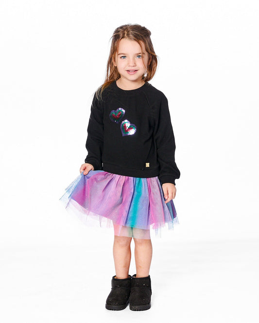 Bi-Material Dress Black With Mesh Skirt