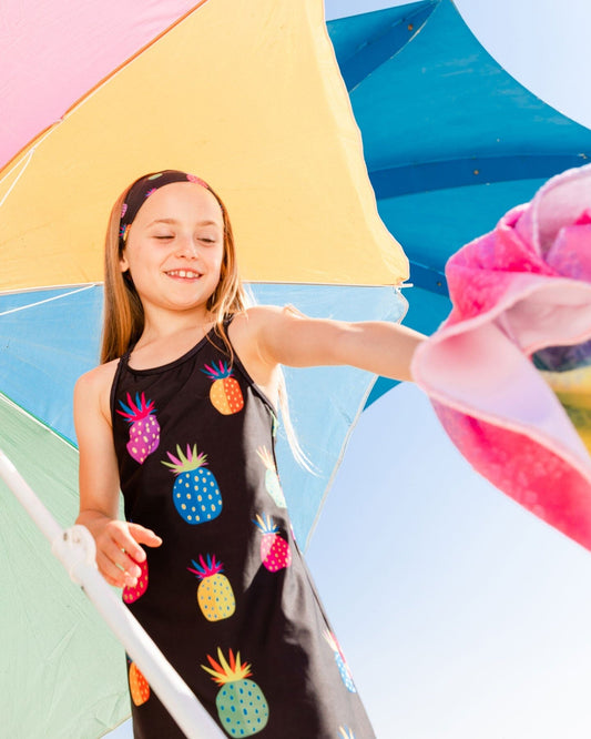 Sold outBeach Dress Black Printed Pineapples