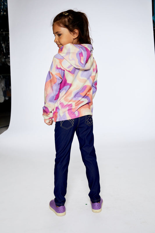 French Terry Blue Denim Pants With Contrasting Patch