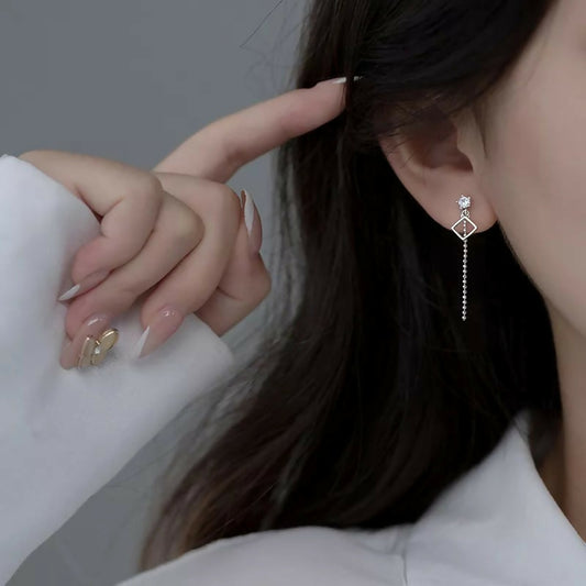 ANYCO Fashion Earrings Silver 925 Sterling Tassel Chain Square Zircon Ear Buckle for Women Jewelry Accessories