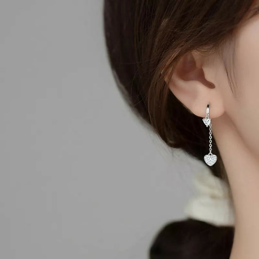 ANYCO Fashion Earrings Silver 925 Sterling Romantic Tassel Love Heart Charms Drop for Women Huggies Jewelry