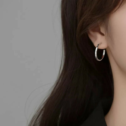 ANYCO Fashion Earrings Silver 925 Sterling Simple Huggies Circle Initials Stud for Women Jewelry
