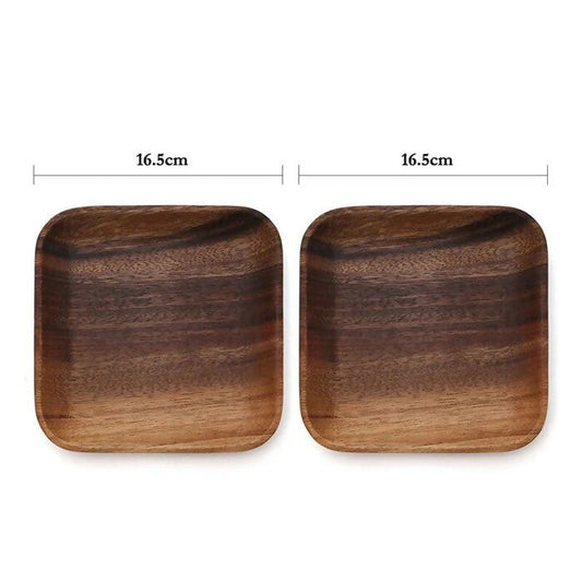 Anygleam Brown 2pcs Square Wooden Plate Serving Tray Kitchen Tableware