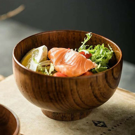 Anygleam Brown 4pcs Wooden Bowls Food Kitchen Tableware