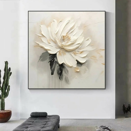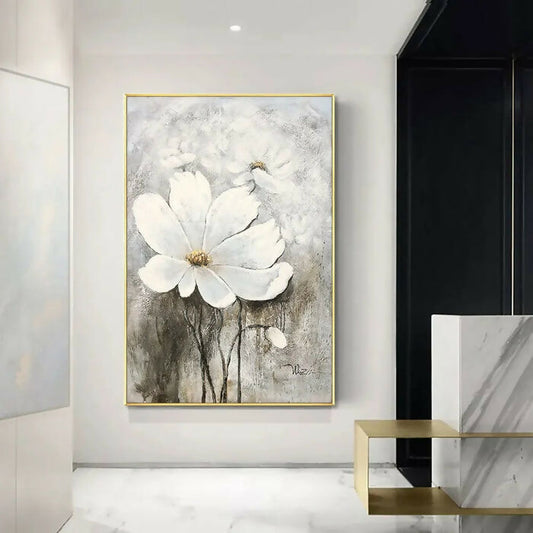 Anyhouz Canvas Art Hand Painted White Serenity Bloom