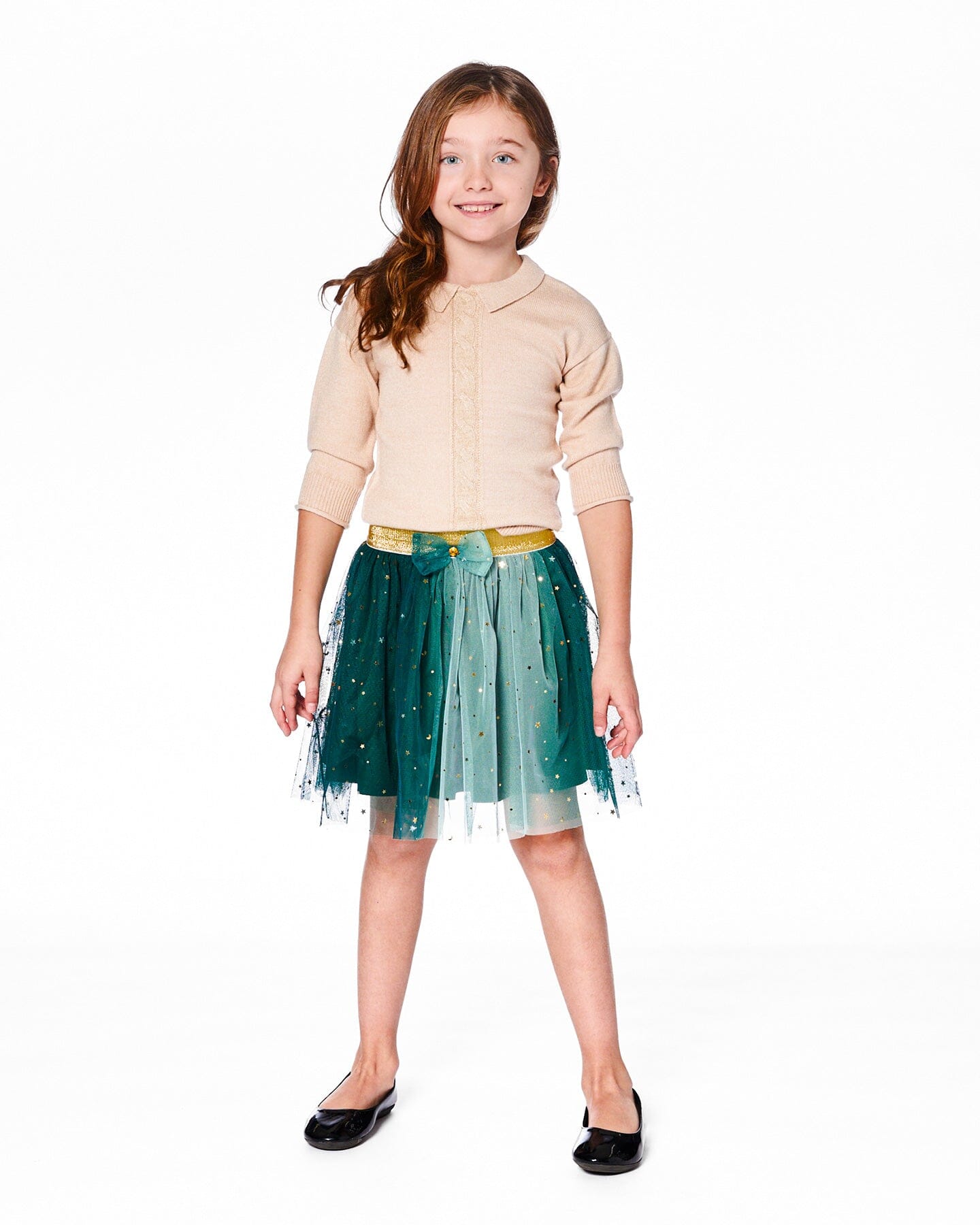 Our 3/4 Sleeve Knitted Sweater Beige blends sweet style and soft texture in one charming piece. This midweight knit sweater features three-quarter sleeves, a scalloped knit pattern down the front, and a flat collar that gives it a classic finish. A ribbed hem and cuffs complete the look, making it ideal for pairing with skirts or trousers from our “The Magic Of Xmas” collection.
