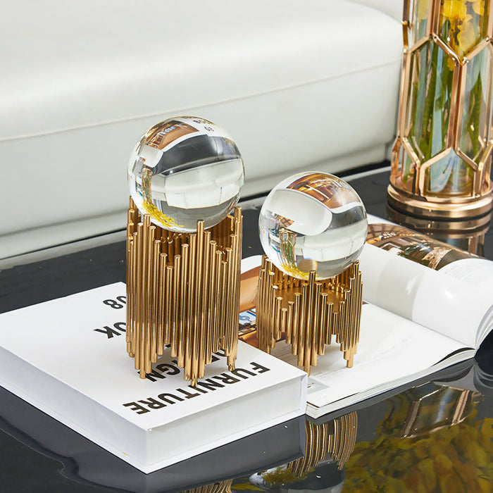 Anyhouz 20cm Luxury Gold Metal Crystal Ball Tabletop Home Decor