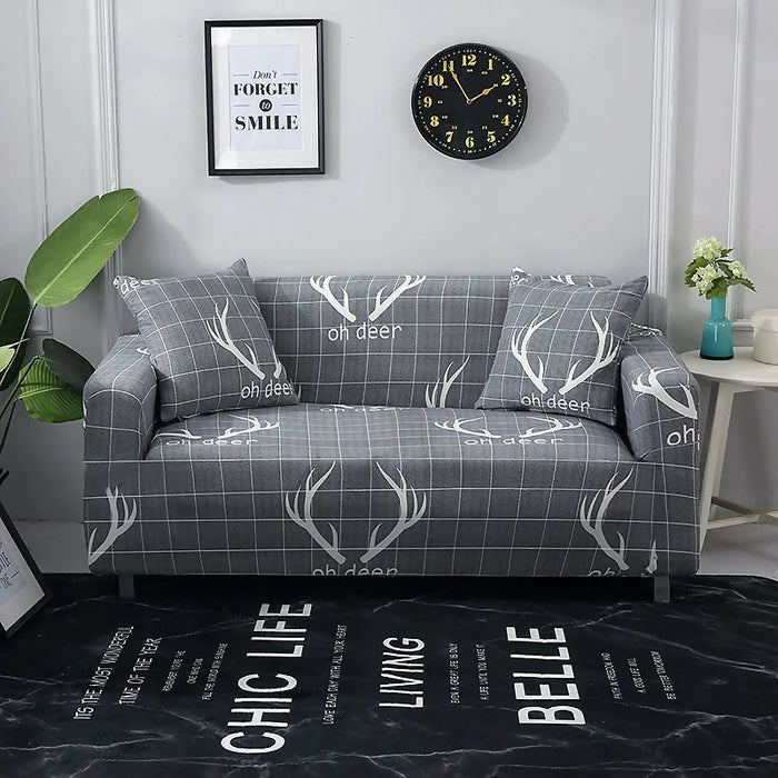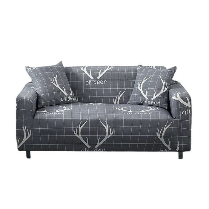 Anyhouz Sofa Cover Gray Plaid Christmas Reindeer Horn Design Stretchable Non Slip Slipcover