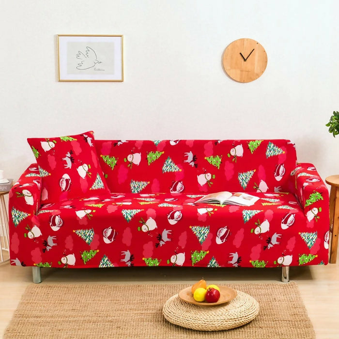 Anyhouz Sofa Cover Red Christmas Tree Snowman Design Non Slip Stretchable Slipcover