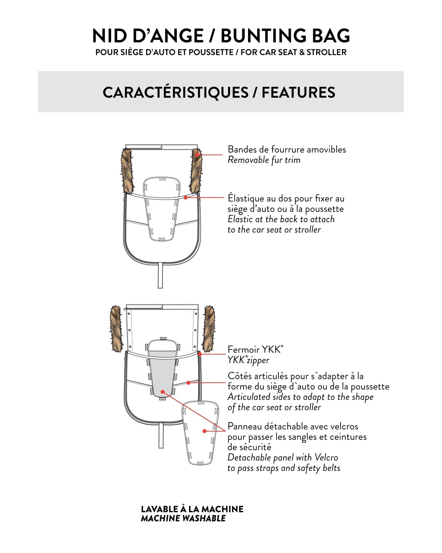 This snuggle bag for babies provides superior warmth and comfort in temperatures down to -20°C (-4°F). Breathable with a waterproof coating to keep infants dry, this bunting bag in chanterelle is car seat compatible with fully detachable back and side zippers that allow for full opening. It’s lined with soft velvet and features a convertible top that can be turned into a hood. A sherpa-lined velour beanie and blanket are included for added warmth.