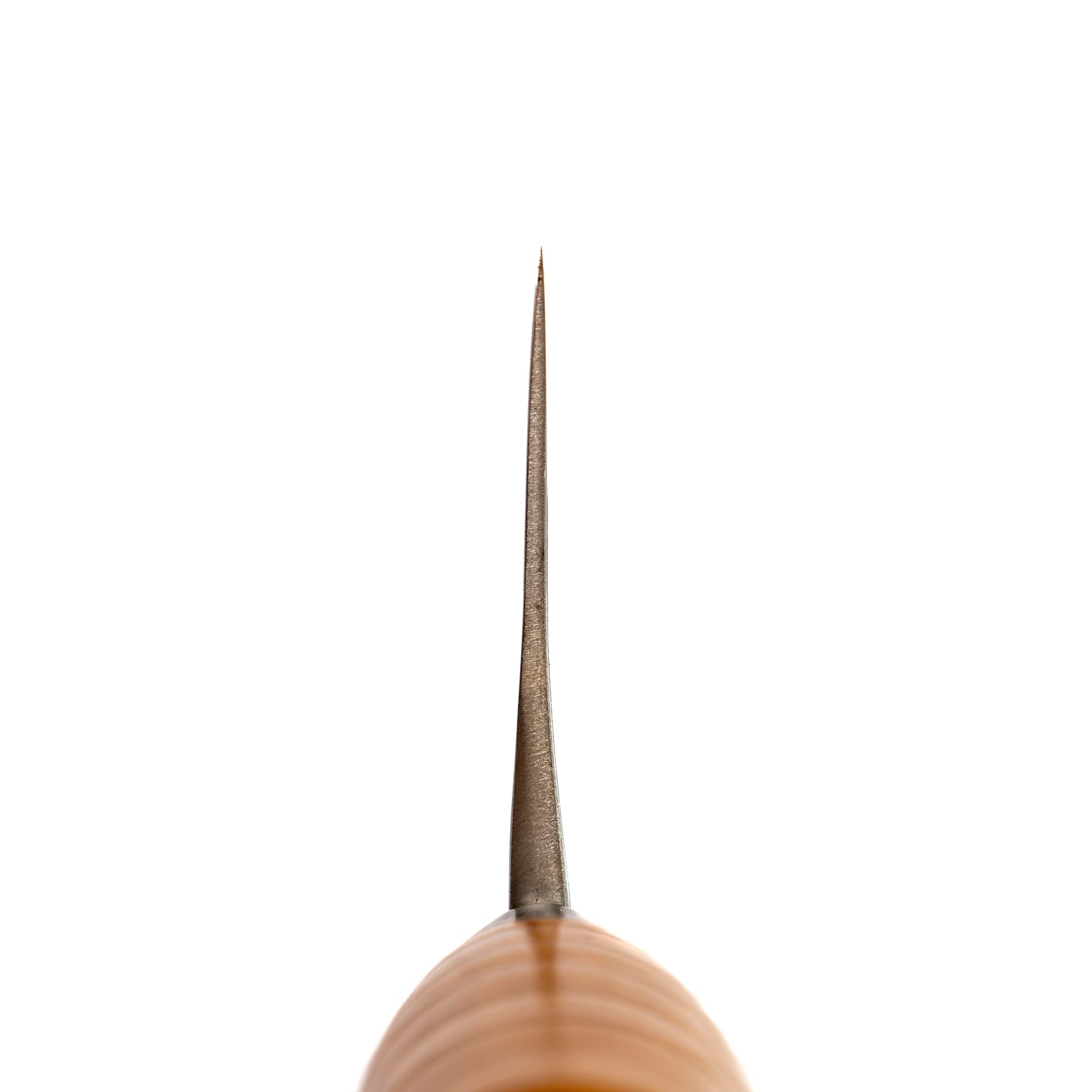 - This knife is made from 3 layers of steel using a technique called Sanmai (Forge welding). It involves laminating a piece of Carbon steel with two pieces of Stainless steel giving the knife all the benefits of the carbon steel (Edge retention, ease of sharpening, cutting feel) and the Ease of Maintenance from Stainless steel. 2-3 millimeters of the carbon steel is exposed at the edge of the knife and is susceptible to rust and discouloration if not properly maintained.