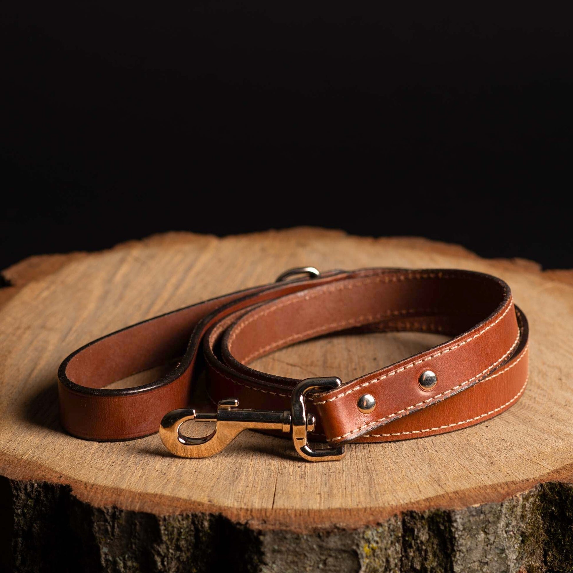 Cognac Stitched Leather Dog Leash 60'' - Made in Canada
