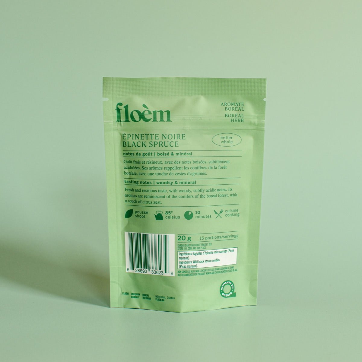 Son goût frais et résineux, avec des notes boisées, subtilement acidulées. Ses arômes rappellent les conifères de la forêt boréale, avec une touche de zestes d'agrumes.