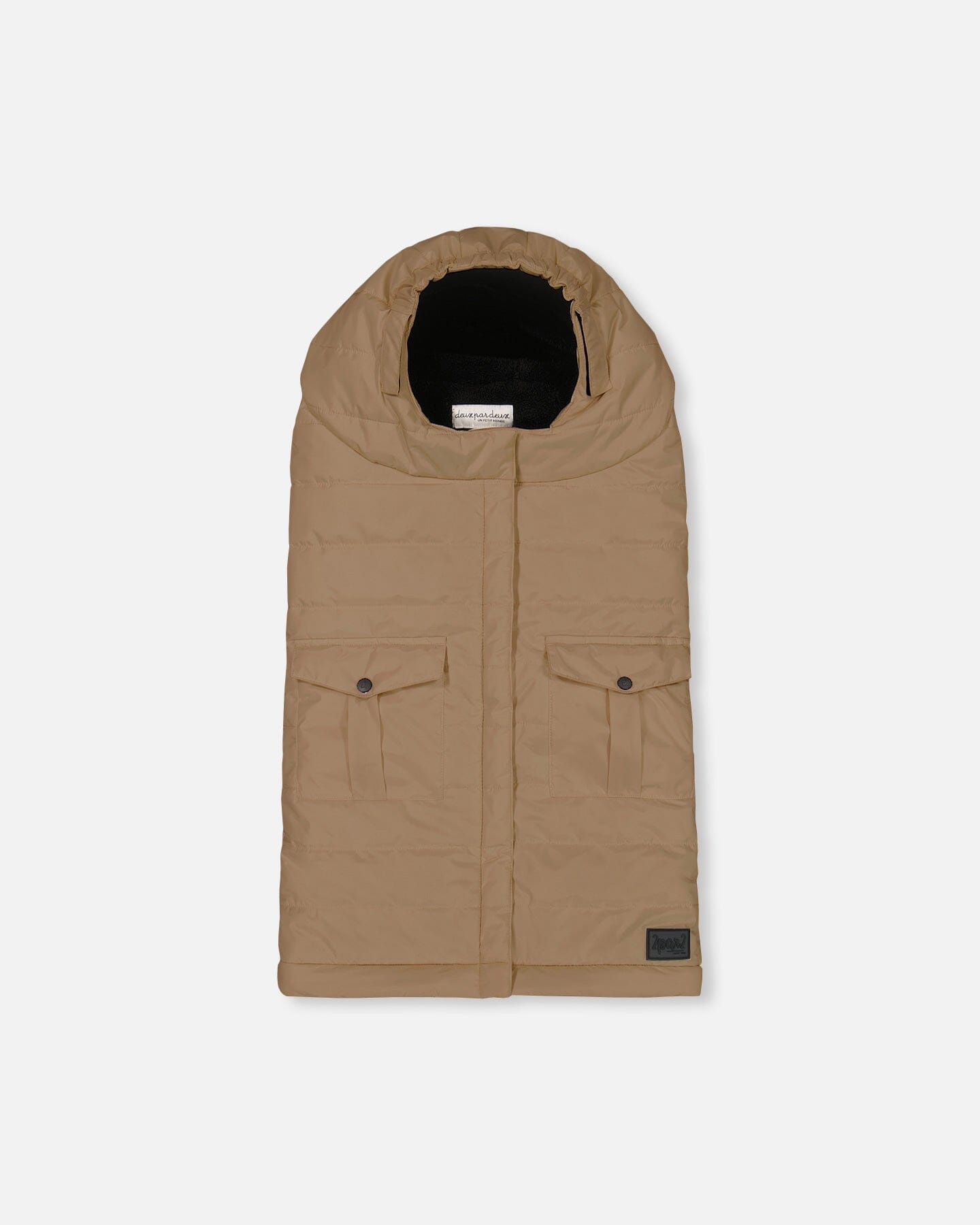 Fully lined with soft plush fabric, this cozy sack is waterproof, breathable, and designed for warmth in temperatures down to -20°C (-4°F). Car seat and stroller compatible, this evolutive baby wrap in chanterelle features a bottom opening to pass the seatbelt buckle through, an adjustable length to grow with the child, an adjustable hood, and functional front flap pockets with snap buttons.