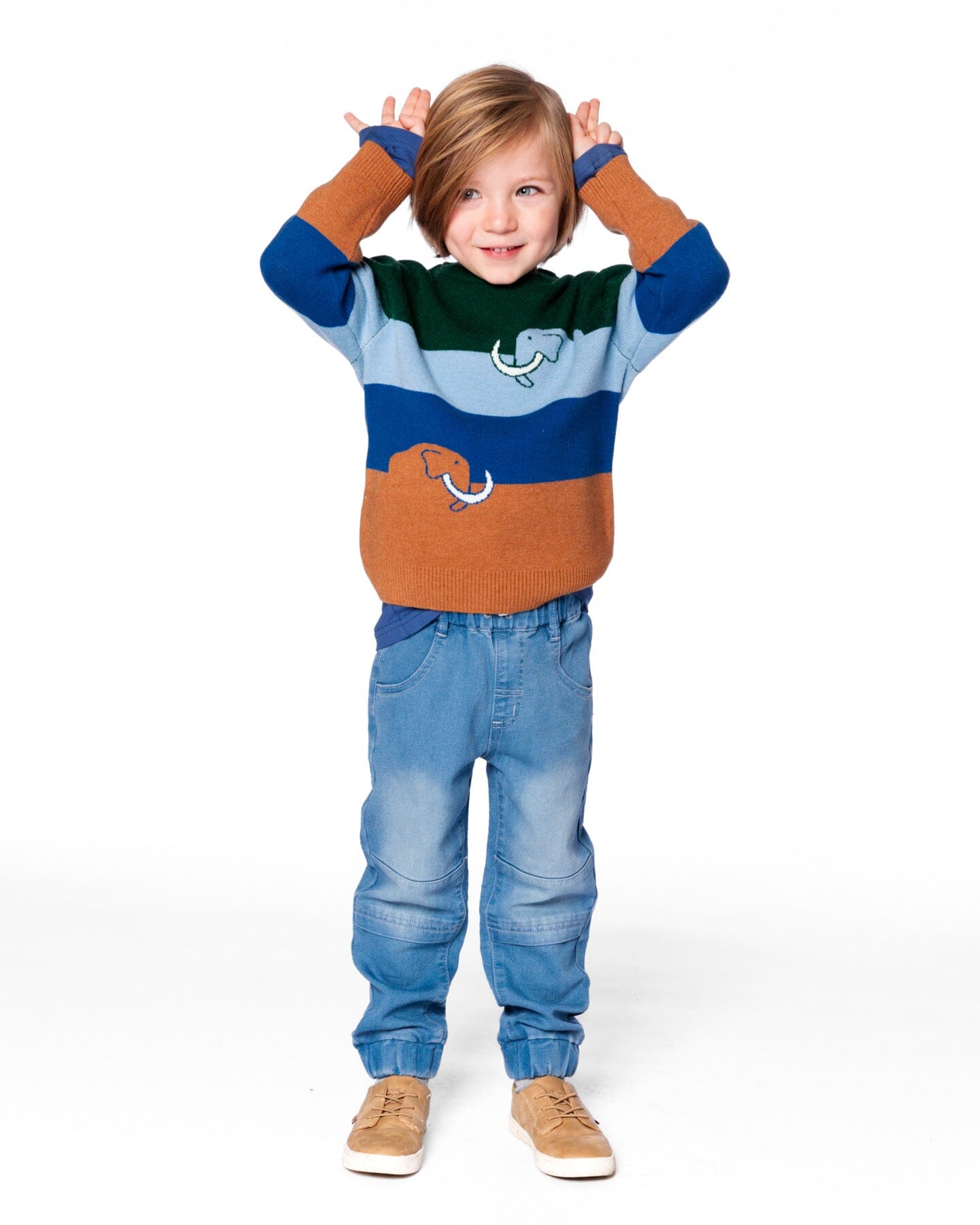 With the look of jeans and the feel of sweatpants, he's going to want to wear these French terry joggers on repeat! Made from stretch French terry fabric with a drawstring waistband, these pull-on jogger pants feature scoop front pockets, seamed knee panels, and elastic ankles for total comfort. .