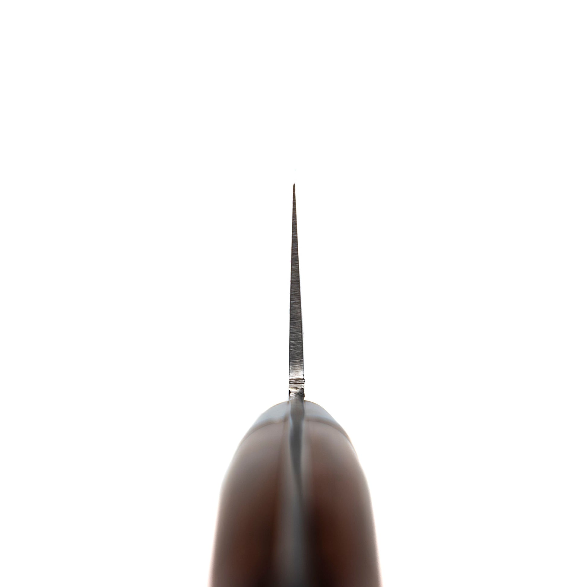 Nakiri are made to chop vegetables. The flat profile and tall blade make it ideal for an up and down chopping motion and the flat spine is great to use as a bench scraper to gather ingredients on the cutting board. This particular Nakiri is balanced forward ever so slightly making it a bit blade heavy which in our opinion is just what you want. Not super heavy, but not light these knives have great feel in the hand.