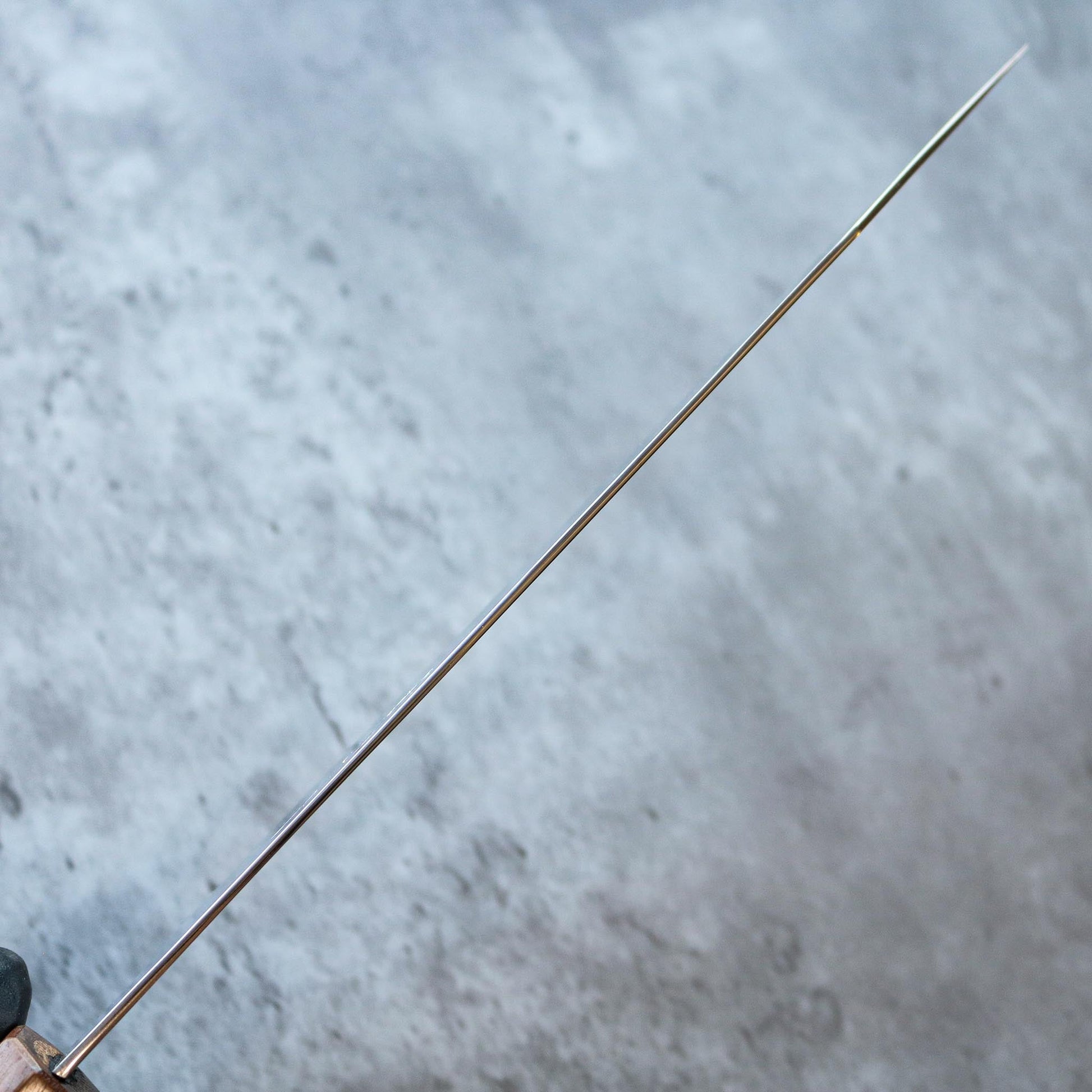 Kenshiro Hatono is a young and very talented smith who was working as an apprentice under Katsuyasu Kamo in the Takefu knife village for about 6 years. He recently opened his own business and has begun producing knives under his own name. We are very excited to have his knives in our shop and look forward to seeing him grow as a smith over the coming years. He is able to work with a variety of steels, can produce many different finishes and along with his excellent edge geometry we are expecting big things from him!