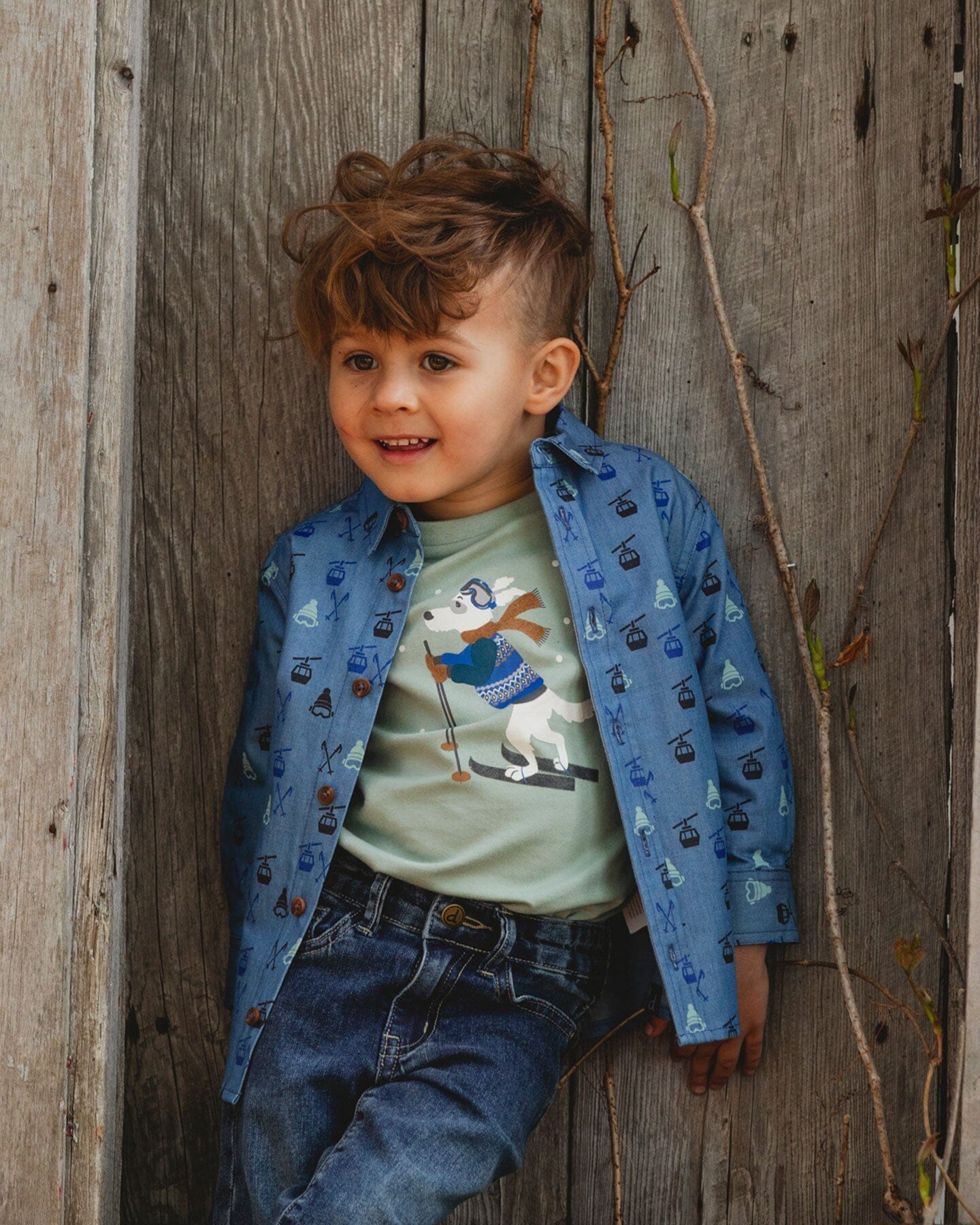 On its own or layered beneath a sweatshirt, this top adds wintry charm to any little boy's wardrobe. In ultra-soft organic cotton jersey, this tee features long sleeves, a comfortable round neckline, and a skiing dog graphic that makes it perfect for chilly, snowy days.