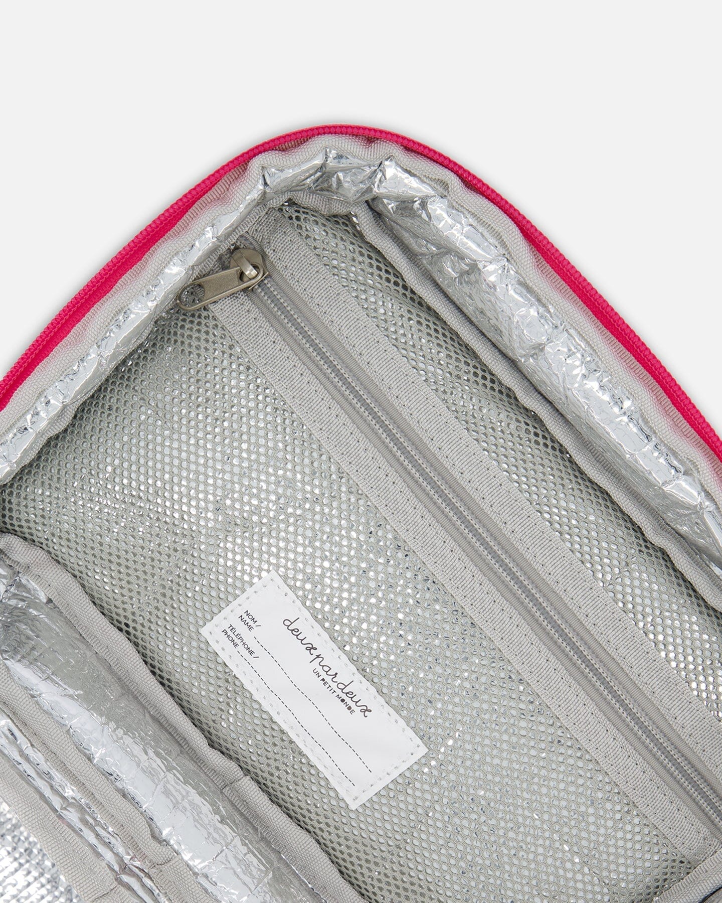 Carry yummy lunches and healthy snacks to school in our Lunch Box Butterflies on Multicolored and Vibrant Pink Background. This lunch box is made from recycled fabric and features an insulated main compartment to keep food hot or cold and an internal zipper pocket to hold utensils and small items. Team it with a matching backpack for a cool, coordinated look!