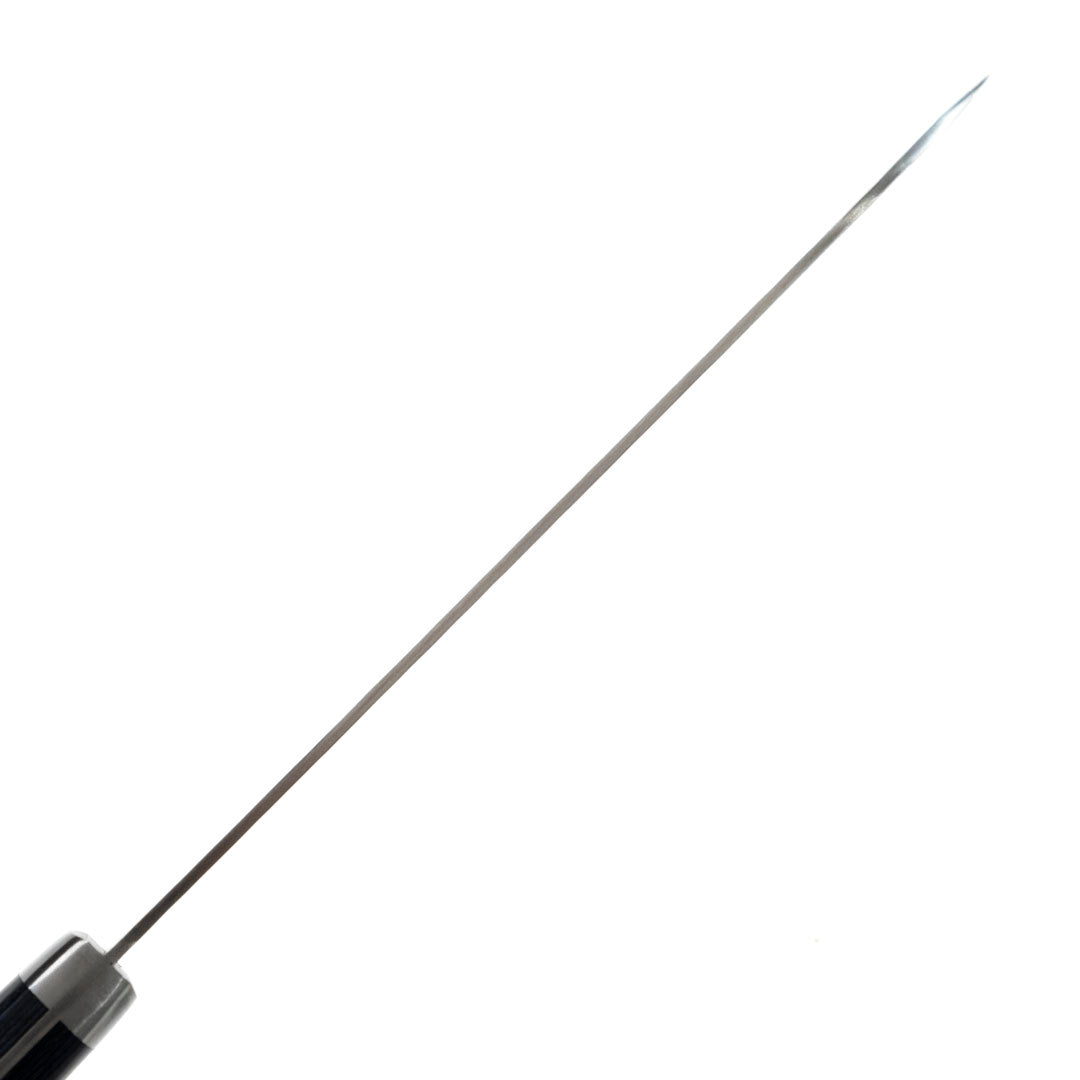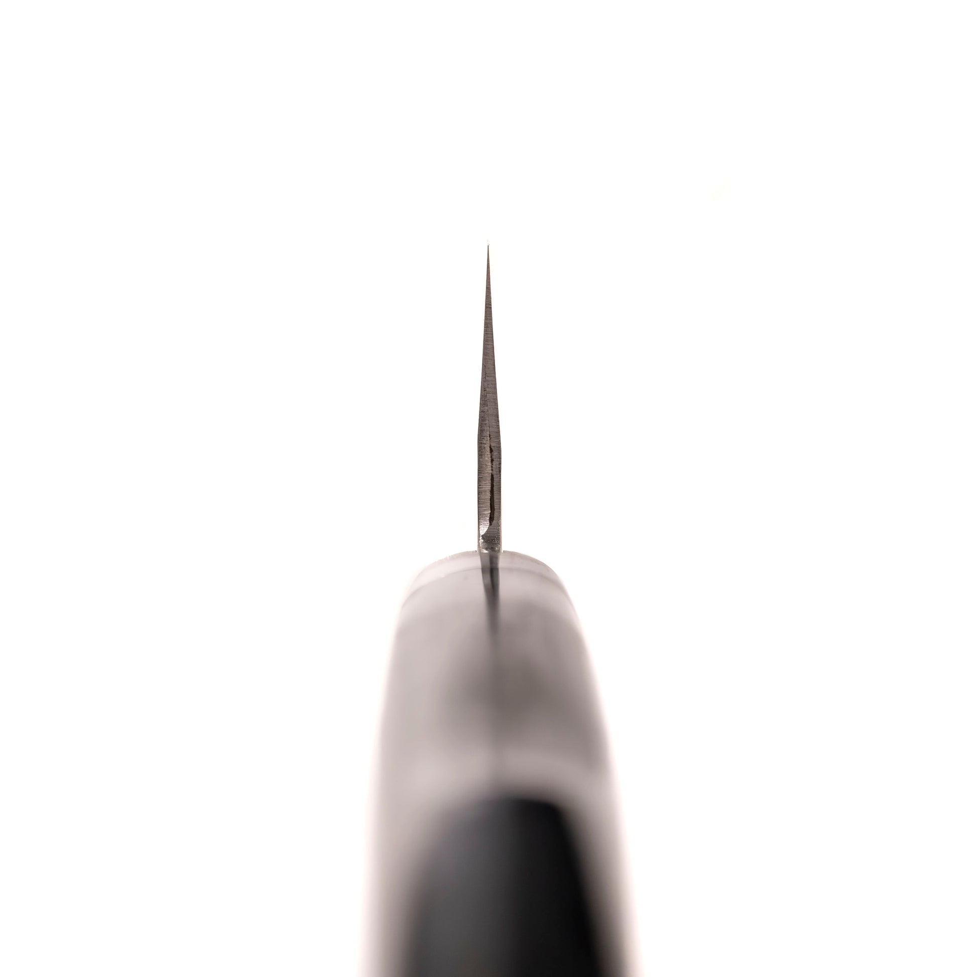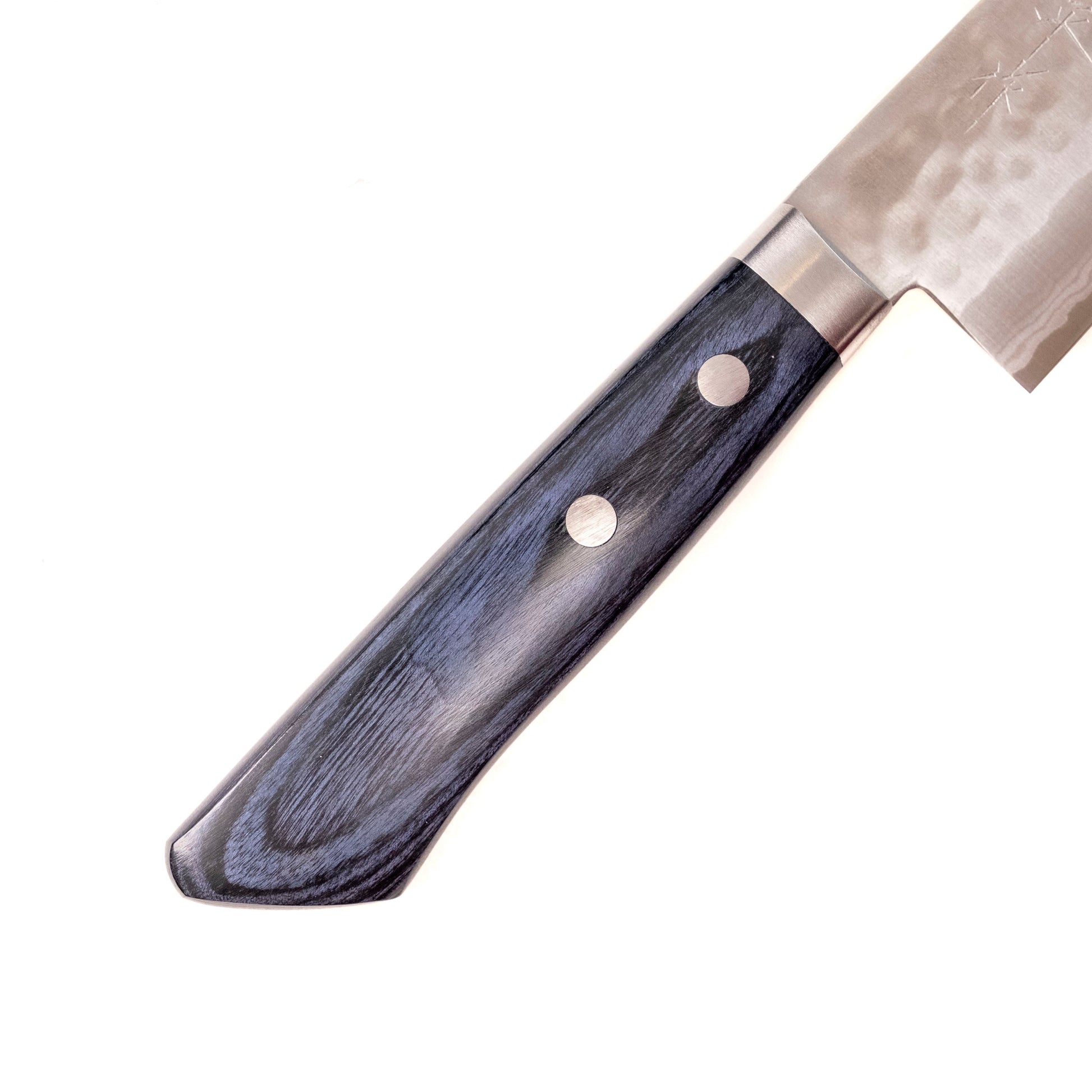 This particular Gyuto is quite light and is balanced right down the middle. The thin blade gives it a really amazing cutting feel and the VG-10 steel has great edge retention. The Gyuto is the Japanese equivalent to the standard western style chefs knife and is easily the most versatile knife shape available. It can be used to chop fruits and vegetables, slice meat and is even great at breaking down smaller fish.