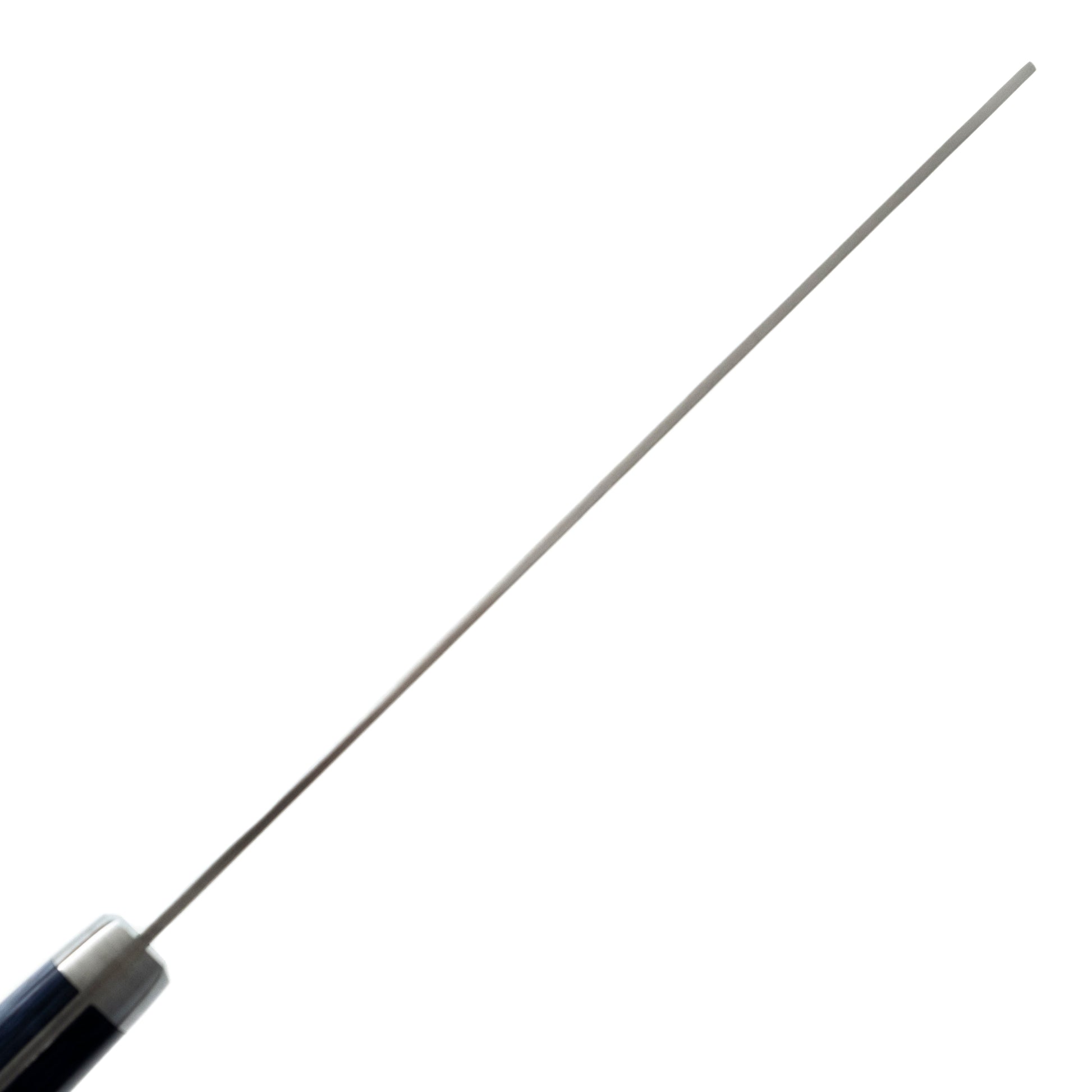 Fantastic Nakiri for home users especially vegetarians/vegans. Nakiri are designed specifically for vegetable chopping due to their tall blades and flat edges which are ideal for up and down chopping. This knife has a very slight curve to the blade though so if you prefer to use a rocking motion when chopping you're perfectly capable of doing so. Nice and light, thin blade that has an amazing cutting feel; it's balance is slightly blade heavy. We like to call Nakiri the stir-fry knife as it can help you get one done in mere minutes once you've mastered the up and down chopping motion.