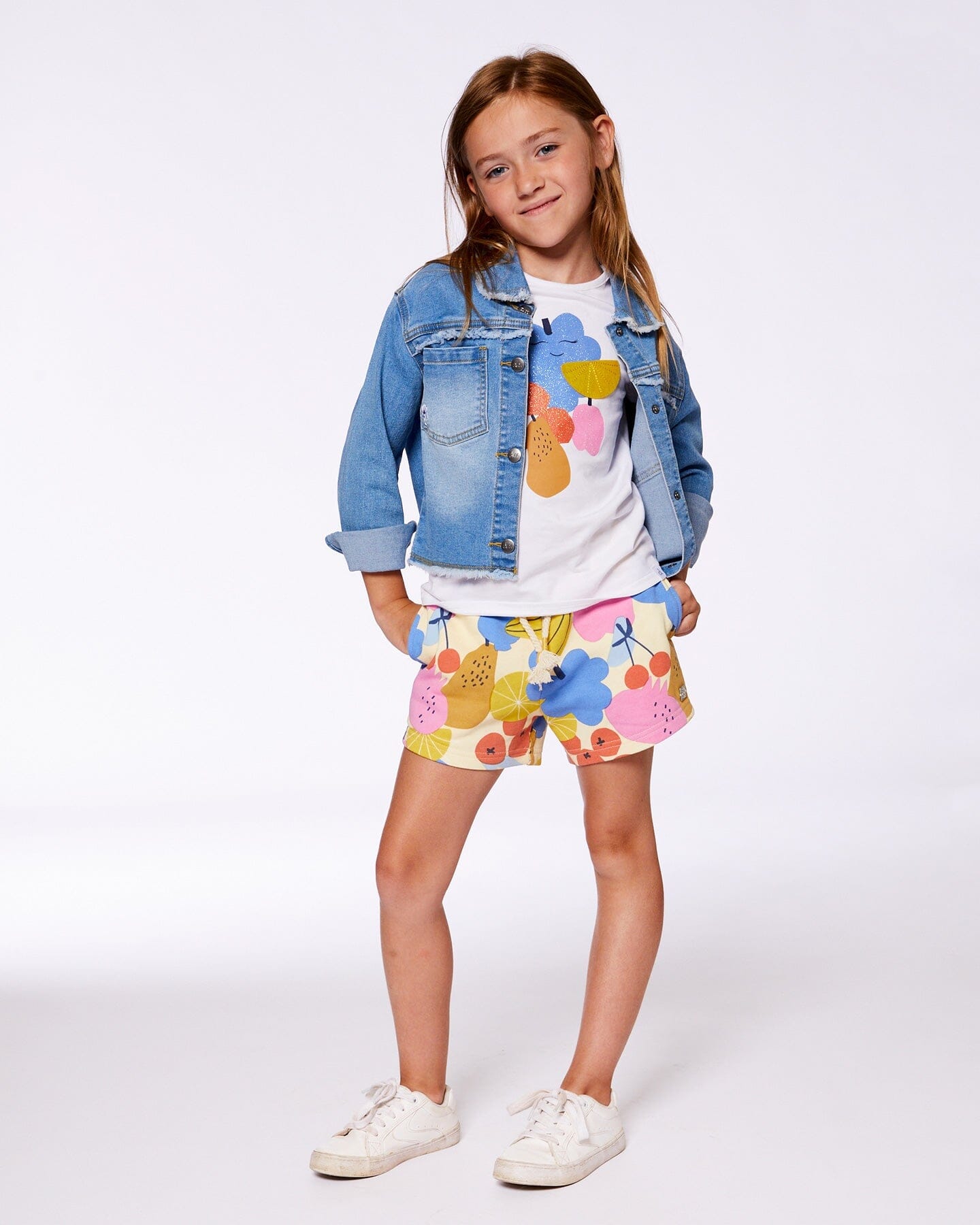 Our Organic Cotton Tee Fruits on White Background is a warm weather must-have she can wear over and over again! This fun tee features short sleeves, a round neckline, and a colorful fruit print on the chest. Mix and match it with different bottoms from our Line Up For Stripes collection to create a variety of different looks!