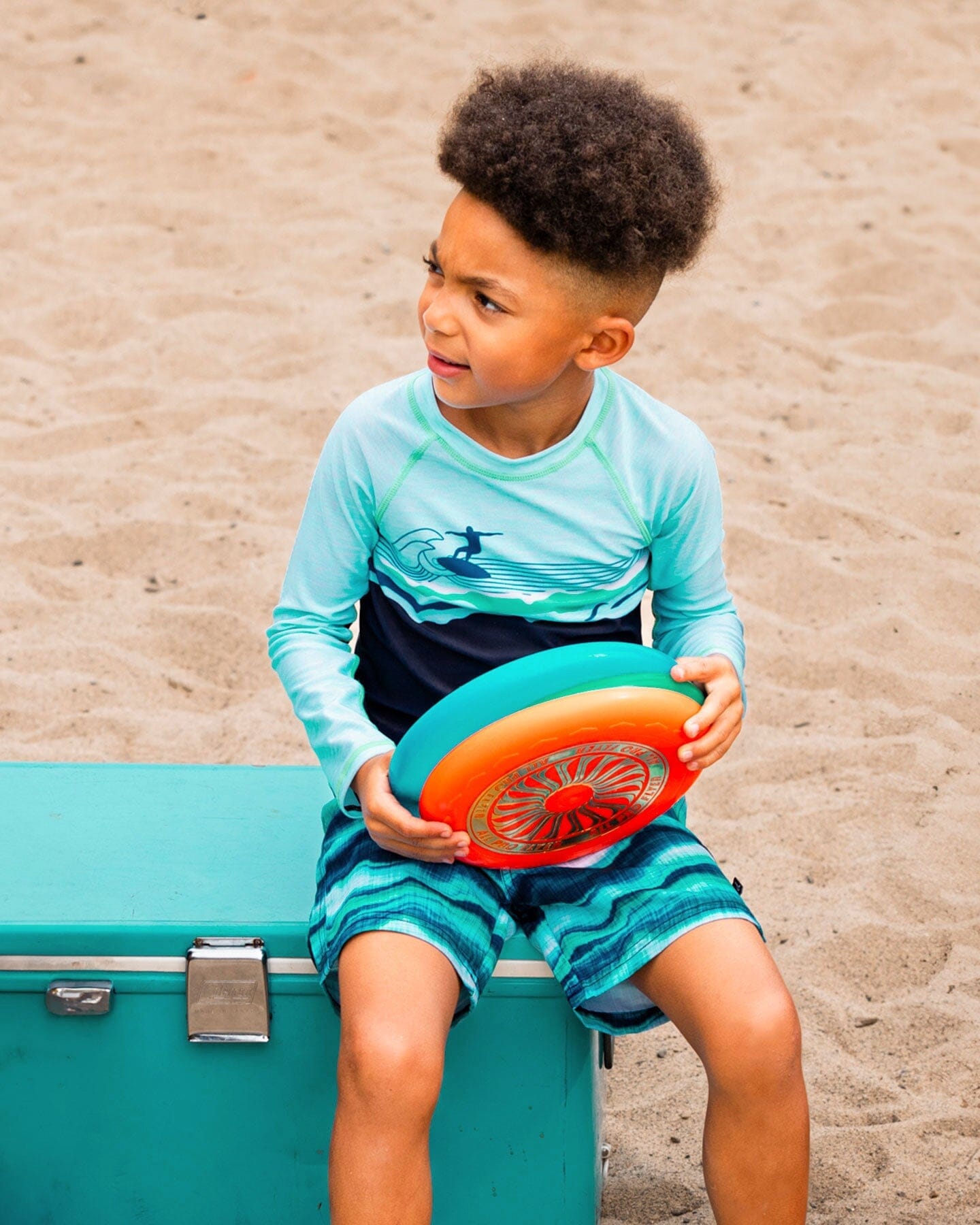 Stand out at the beach or pool in our Printed Boardshorts Blue Wave and Black. With an eye-catching allover print and a comfortable above-the-knee fit, these swim shorts feature a drawstring elastic waistband and a polyester lining that offers comfortable support. Team with a coordinating rashguard to make an even bolder statement on the beach!