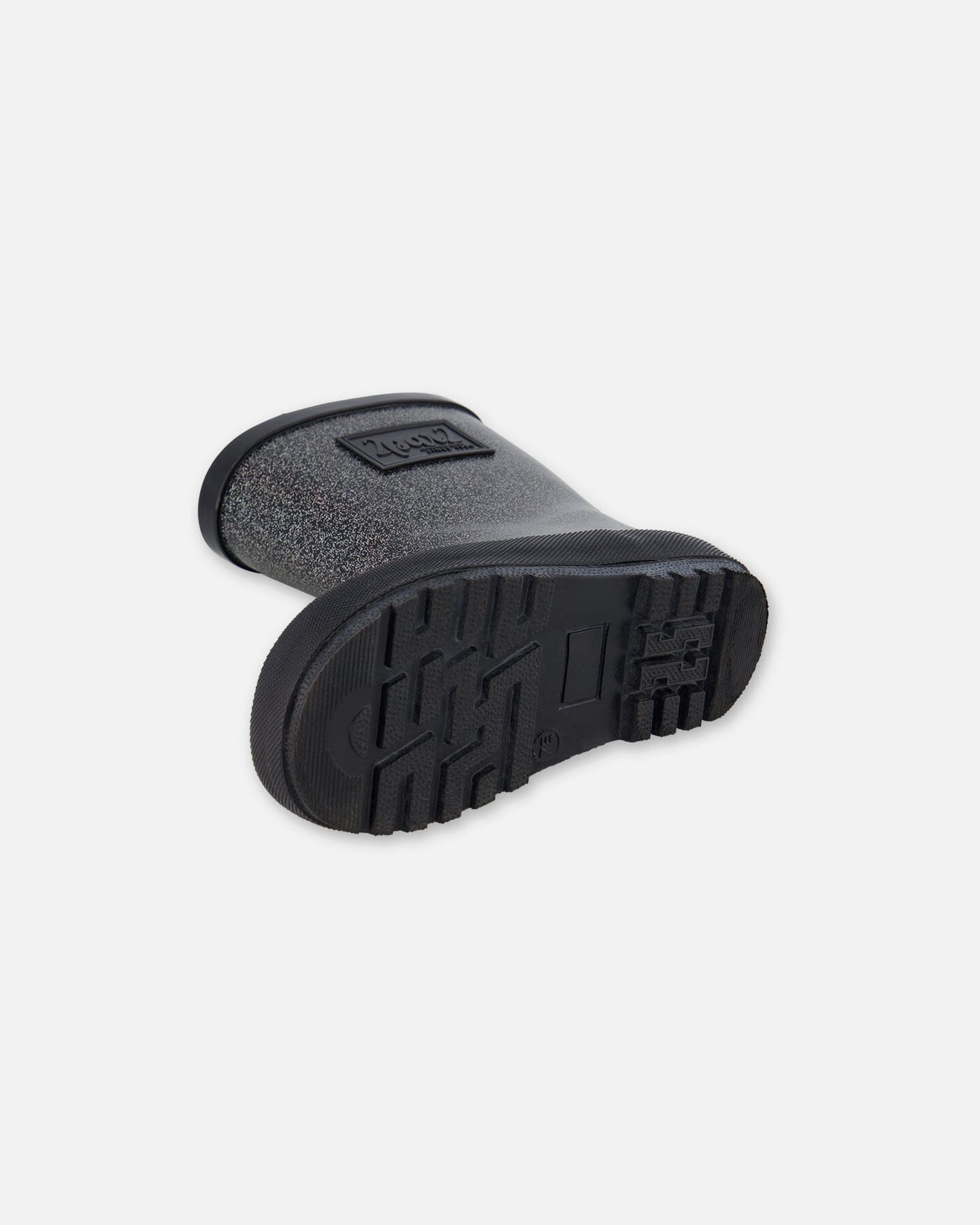 Put the perfect finishing touch on any rainy day look with our Rain Boots Glittering Black. Comfy and cool, these boots are made from natural rubber material and feature a waterproof design with bottom treads, a logo patch on the side, and a soft plush lining to keep little toes extra cozy and warm.