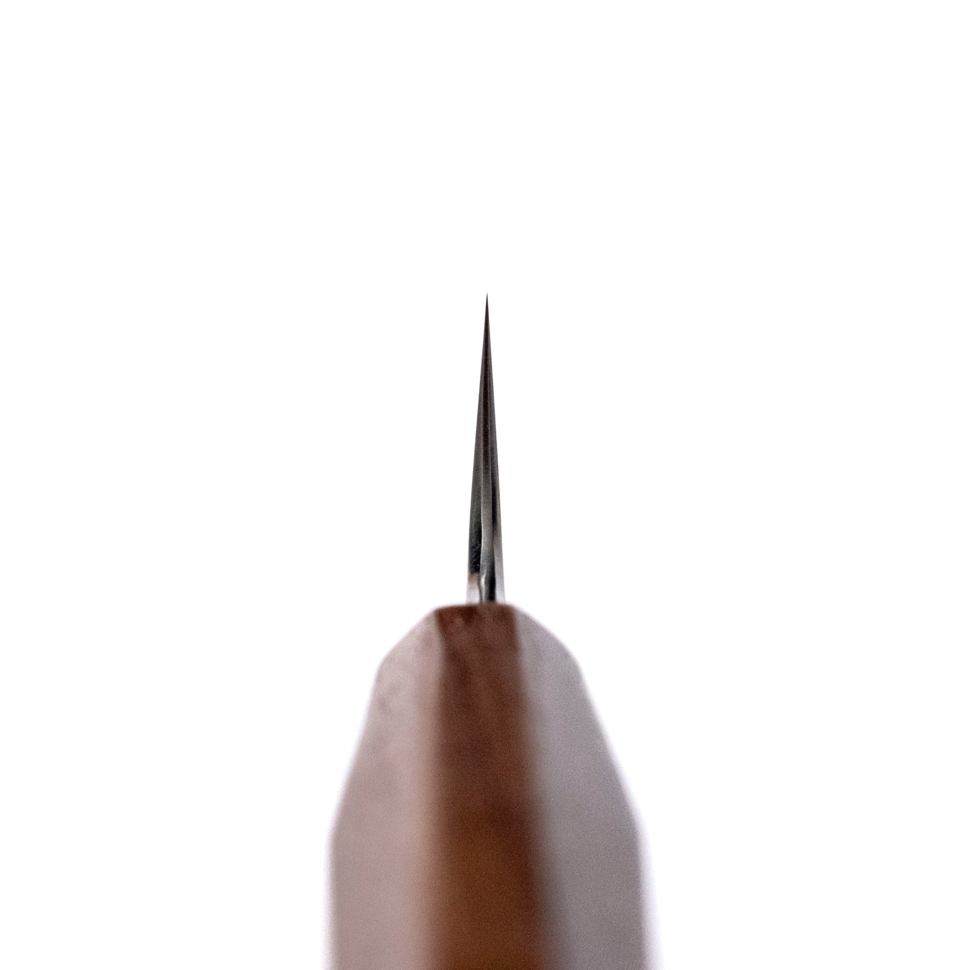 The Sujihiki is meant for all things slicing. The long slender blade allows the user to perform nice long strokes and avoid sawing through proteins which leads to perfect, thin slices and no more tearing. Carving roasts, slicing brisket, thinly slicing fish are all within its grasp.