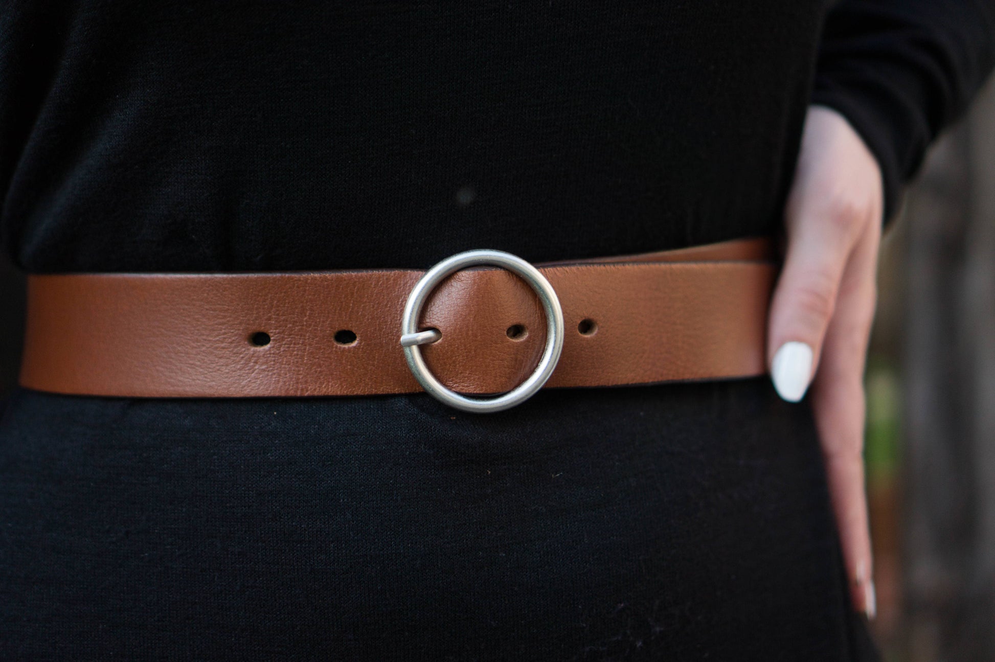 The Sempre belt is a beautiful handmade leather belt for women that can be worn as a high waisted belt or a regular belt around the hips. It features a polished round buckle on Tuscany Vachetta leather. A versatile piece you'll love and wear forever.